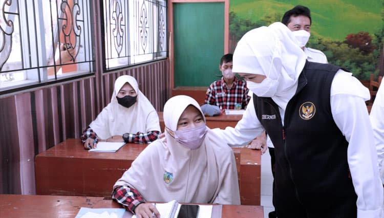 TIMES Jember/Gubernur Khofifah saat meninjau PTM terbatas. (FOTO: Dok.Humas Pemprov Jatim)