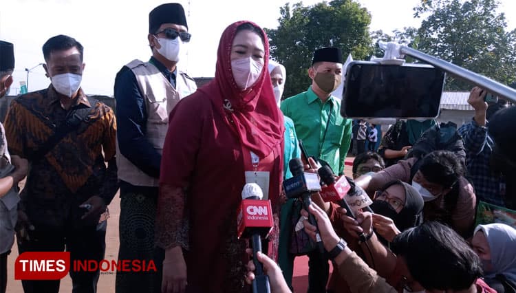 TIMES Jember/Putri Abdurrahman Wahid (Gus Dur) Yeny Wahid saat diwawancarai oleh awak media. (FOTO: Moh Ramli/TIMES Indonesia)