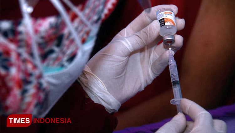 TIMES Jember/Salah satu tenaga kesehatan saat mengisi dosis vaksin untuk disuntikkan. (FOTO: Adhitya Hendra/TIMES Indonesia)