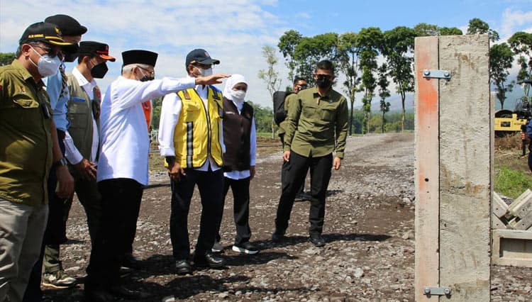 TIMES Jember/Sekjen PUPR RI Mohammad Zainal Fatah dampingi Wapres RI KH Ma'ruf Amin meninjau lokasi pembangunan Hunian Sementara (Huntara) bagi korban terdampak erupsi Gunung Semeru di Desa Sumbermujur, Kecamatan Candipuro, Kabupaten Lumajang.